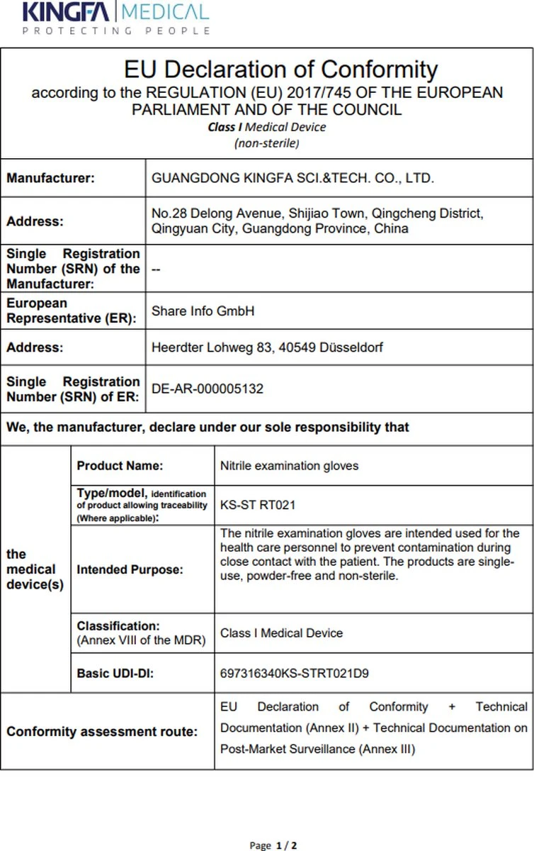 100 Medische Nitril Onderzoekshandschoenen | Kingfa KS-ST RT021