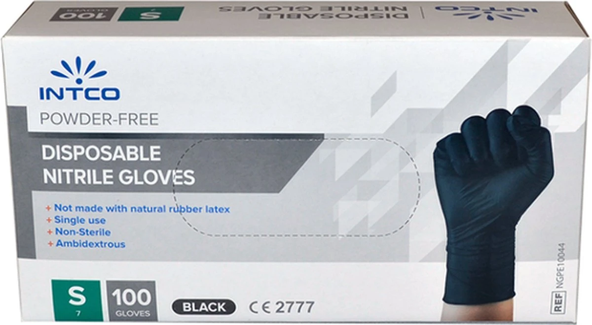 Intco Nitril Handschoenen – Latex Vrij – Zwart – 100 Stuks – Maat Small