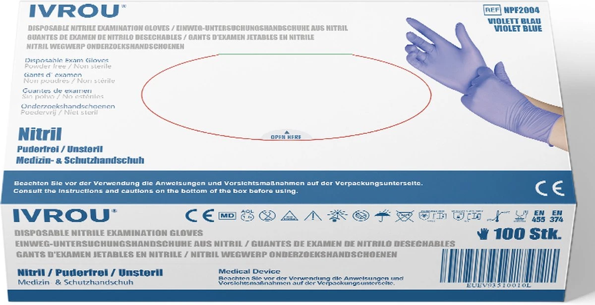 IVROU® Nitril Handschoenen – 100 Stuks Wegwerp Handschoenen – Poeder Vrij, Latex Vrij – Maat: M – Violet Blauw