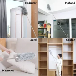 Plumeau Uitschuifbaar Tot 280cm – RVS – Telescopisch – Plumeau Met Telescoopsteel – 360° Flexibel